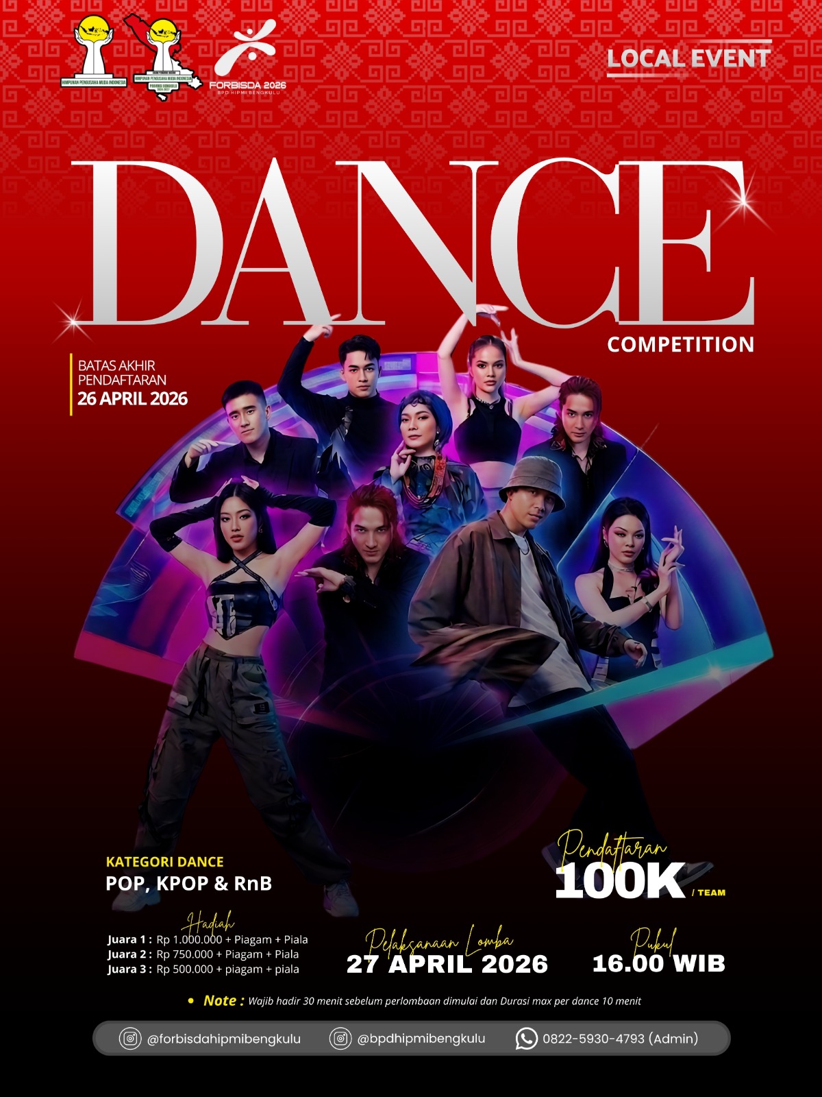 “Kami mengundang para pemuda pegiat seni tari modern untuk ikut ambil bagian dalam memeriahkan Forbisda 2026. Ini adalah ruang bagi mereka untuk mengekspresikan kreativitas sekaligus mendukung kegiatan positif yang terintegrasi dengan UMKM Expo 2026,” ujar Dwi Ressy Oktiyana.